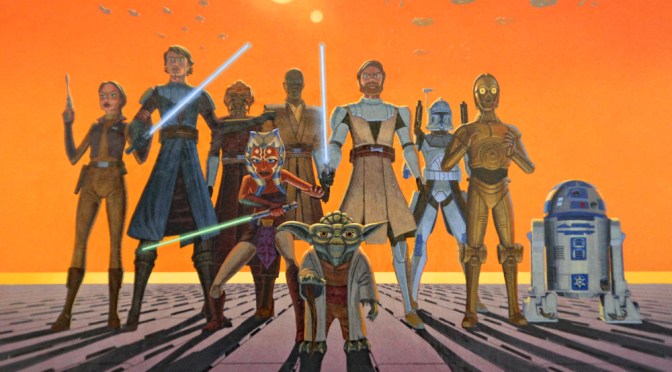 Alle sprechen über die neuen Star Wars Filme, ich spreche über eine alte Star Wars Serie. Die animierte Fernsehserie Star Wars – The Clone Wars behandelt nicht nur die Geschichte der geteilten Galaxis, also den Konflikt zwischen der Republik und der Separatisten, sondern teilt bis heute auch die Star Wars Fan-Gemeinde in verschieden Lager. Es gibt begeisterte Anhänger und mindestens ebenso viele Fans, welche die Serie ablehnen, hassen oder einfach gar nicht beachten. Ich finde mich selbst so ungefähr in der Mitte dieser Extreme wieder. Auf jeden Fall hat The Clone Wars ein großes und reichhaltiges Erbe hinterlassen, auf welches künftige Star Wars Serien und Filme immer wieder zurückgreifen werden.