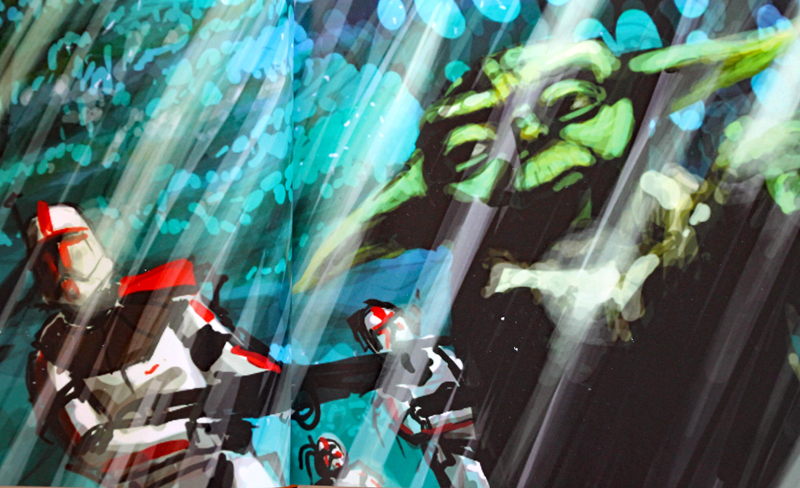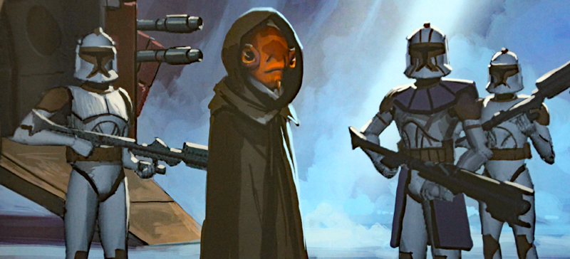 Zum Schluss noch ein Buch-Tipp von mir. Wie auch alle anderen „The Art of Star Wars“ – Bücher, so ist auch das Art-Buch zur ersten Staffel der Serie The Clone Wars unbedingt zu empfehlen. Das Buch bietet neben den vielen sensationellen Bildern auch die komplette Entstehungsgeschichte der Serie. Als Zugabe sind außerdem noch ein paar hochwertige Drucke beigelegt. Ich habe ein paar Beispielbilder in diesem Bericht aus dem Buch verwendet, um ein wenig Werbung dafür zu machen. Die meisten der hier gezeigten Bilder stammen übrigens von Dave Filoni, dem Supervising Director der Serie, und diese gehören atmosphärisch gesehen zu meinen Lieblingswerken. Hier noch einmal der komplette Titel des Buches: The Art of Star Wars: The Clone Wars von Frank Parisi und Gary Scheppke