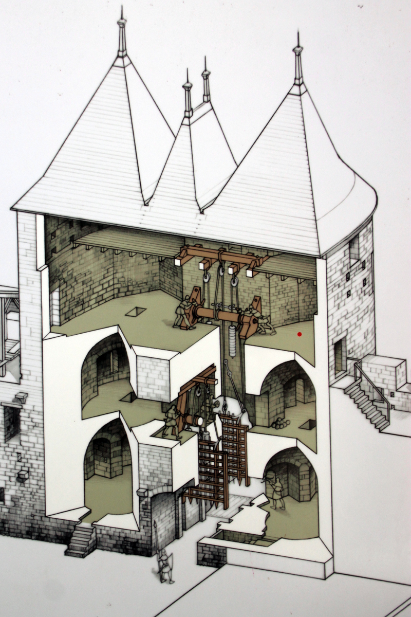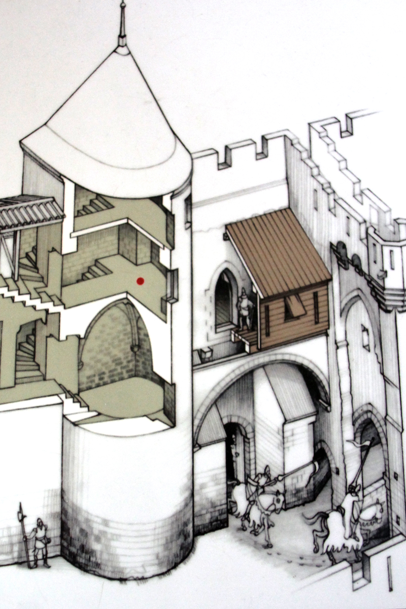 Das Eingangstor verschlossen zwei Fallgatter und eine eisenbeschlagene Tür, die von verschiedenen Personen bedient werden mussten – um Verrat zu verhindern.