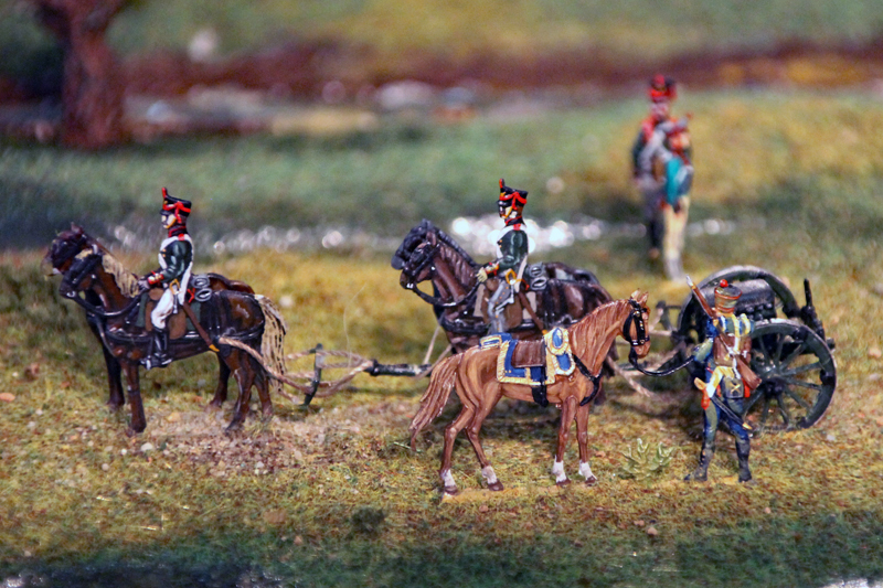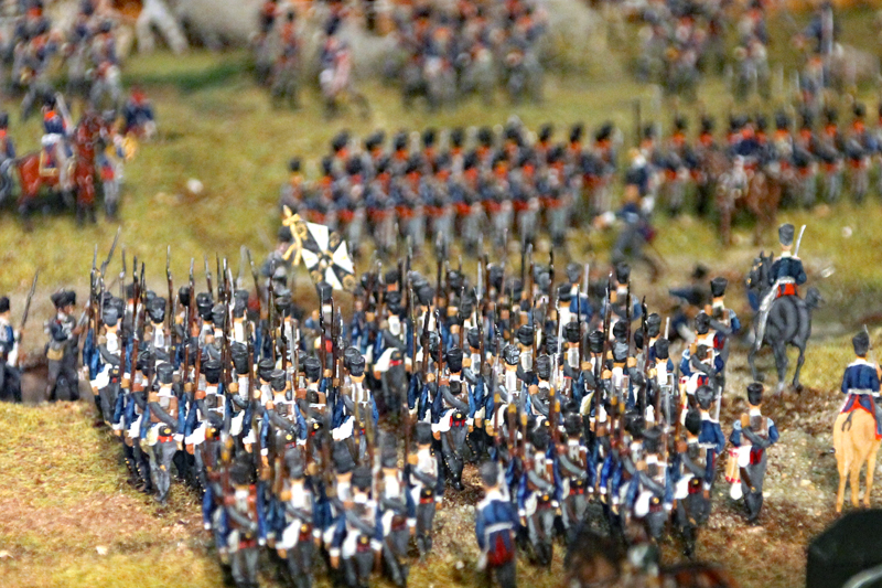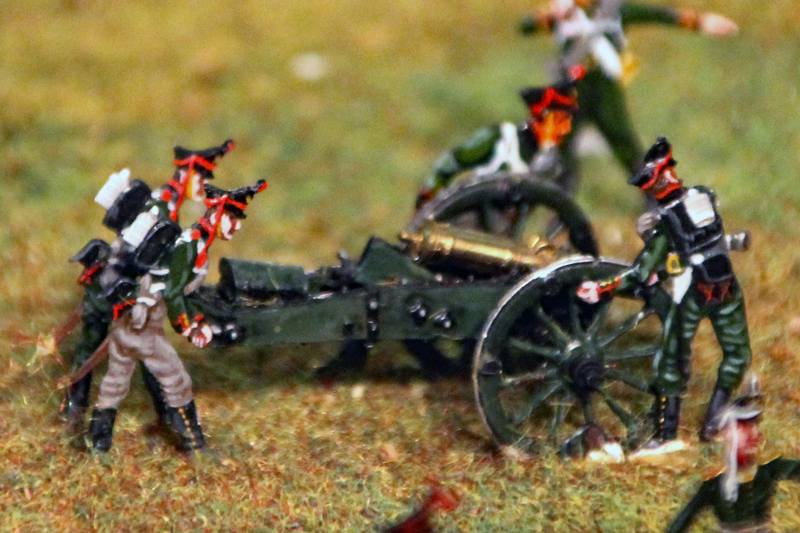Auf dem äußerstem linken Flügel der Alliierten (im Süden) sind russische Jäger vom 26. Regiment im Feuergefecht mit neapolitanischen Grenadieren begriffen.