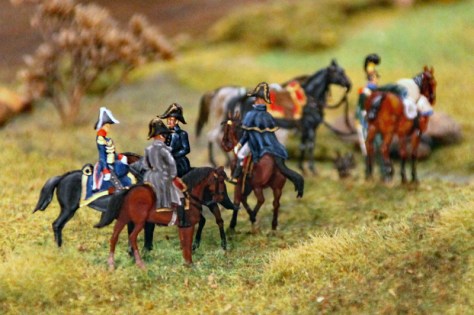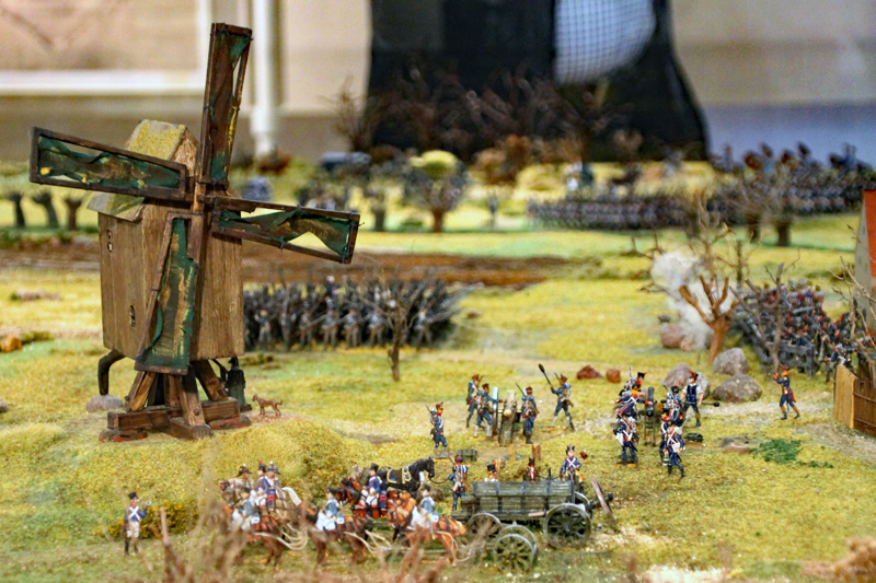 Der französische Oberkommandierende General de Division Grenier zieht hinter dem Dorf Verstärkungen heran, um sie nördlich davon am Windmühlenberg in Stellung zu bringen.