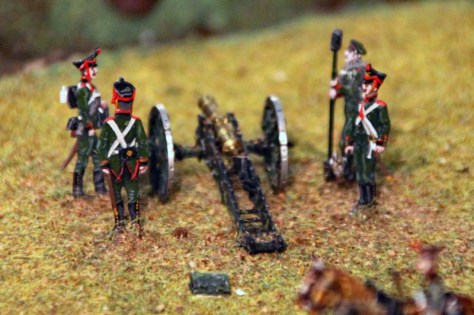 Russische Artillerie unterstützt die Angriffe südlich der Brücke, preußische nördlich davon.
