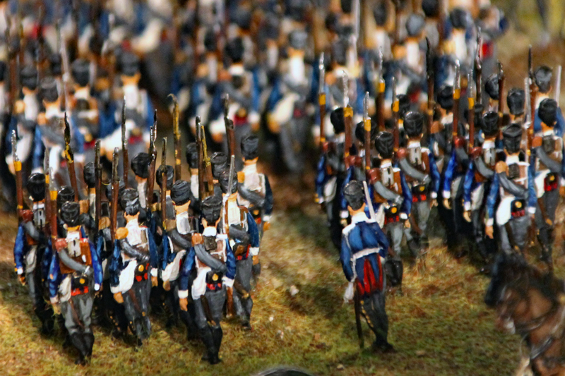 Die Gärten zur Ehle hin werden im zentralem Abschnitt durch Füsiliere vom Französischem 112. Linien-Regiment verteidigt, auf dem rechten (südlichem) Flügel der Franzosen sind Grenadiere und Voltigeure aus Neapel im Gefecht.