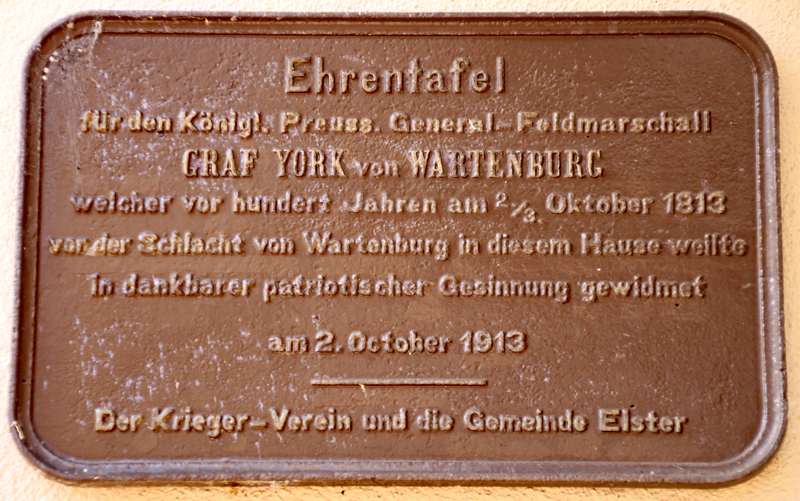 In diesem Gebäude in Elster, heute ein sehr schönes Cafe, war General Yorck einquartiert gewesen.