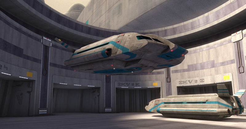Raumfähren – Eine nette Idee sind die Raumfähren in der Serie, die nicht nur eine Hommage an die Attraktion „Star Tours“ im Vergnügungspark Disneyland darstellen, welche auch in Star Wars Rebels vom Droiden Rex bzw. RX-24 gesteuert werden, sondern auch an die Entwürfe von McQuarrie erinnern.