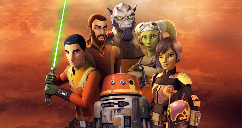 Die 3D-Animationsserie Star Wars Rebels wurde in 4 Kurzepisoden, einem Fernsehfilm sowie 4 Staffel mit insgesamt 76 Episoden von 2014 bis 2018 produziert und ausgestrahlt. Wie schon die Animations-Serie The Clone Wars, so wurde auch Star Wars Rebels unter der Führung des sympathischen Dave Filoni produziert. Die Grundlage der Handlung und der Haupt-Charaktere von Star Wars Rebels stammt noch aus der Entwicklungsphase von „The Clone Wars“. Das Handlungs-Konzept von Filoni für The Clone Wars bestand zu Beginn aus der Besatzung eines kleinen Schmuggler-Raumschiffes, die aus einem Padawan, seinem Meister, dem Schmuggler-Kapitän und seiner Freundin sowie einem großen, starken, nichtmenschlichen Charakter bestehen sollte. Doch damals hatte George Lucas seine eigenen Ideen und das Konzept von Filoni wurde zunächst verworfen. Nun holte Dave Filoni den alten Entwurf wieder aus der Versenkung. Angesiedelt ist die Handlung zwischen Episode III und Episode IV und erzählt wird die Geschichte von der Entstehung der ersten Rebellen-Gruppen bis zur Bildung der Rebellen-Allianz sowie der ersten Kämpfe gegen das Imperium.