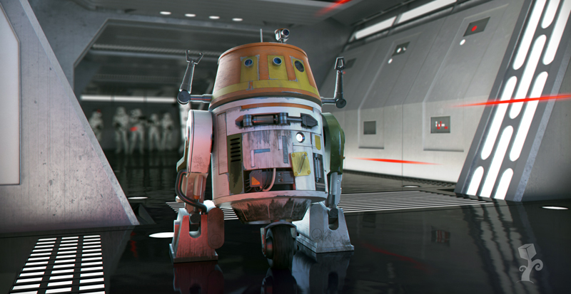 Chopper – Der verrückte Droide Chopper verdank sein Aussehen ebenfalls McQuarrie. Die typischen Droidenarme, mit deren Hilfe Chopper menschenähnliche Gesten zeigen kann, erkennt man deutlich in den frühen Zeichnungen zu R2D2