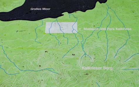 Großartig finde ich jedoch den sogenannten Weg der Römer. Dieser Pfad folgt der vermutlichen Route der Römer von Osten kommend entlang des Kalkrieser Berges. Er besteht aus großen rostigen Stahlplatten, auf denen immer wieder Zitate antiker Quellen auftauchen. Die Stahlplatten liegen zunächst dicht beieinander, wie einst die kompakte römische Formation. Am Ende tauchen sie nur noch verstreut auf und stellen so das sich auflösende Heer am Ende der Schlacht dar.