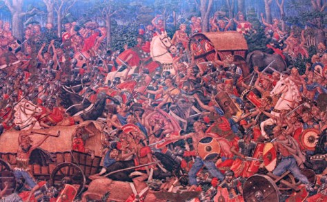 Da das Varusschlacht-Museum bei Kalkriese für mich auf halben Weg ins Rheinland liegt und auch nicht weit von der Autobahnausfahrt entfernt ist, habe ich das Museum und Schlachtfeld schon mehrfach aufgesucht. Zuletzt baute ich einen Besuch in eine meiner Fahrradtouren ein, nicht zuletzt, um ein Gefühl für die Landschaft und ihre Eigenheiten zu bekommen. Bei 30 Grad im Schatten schwitzte ich Blut und Wasser, als ich über den Kalkrieser Berg zum Museum fuhr. Kein Wunder, dass dieser Hügel für die Römer ein schwieriges Hindernis war, als sie versuchten, aus der Falle zu entkommen, die Arminius hier für sie gestellt hatte.