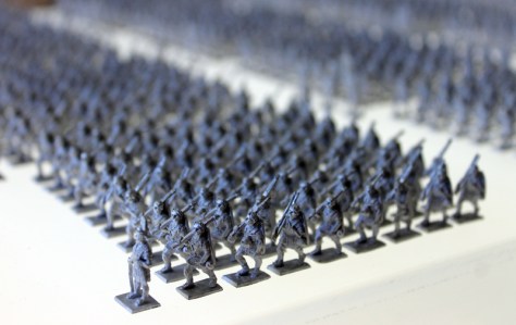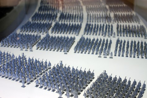 Ein Diorama mit 15mm Zinnfiguren verdeutlicht, wie der römische Heerwurm von 3 Legionen und Tross damals ausgesehen haben könnte.