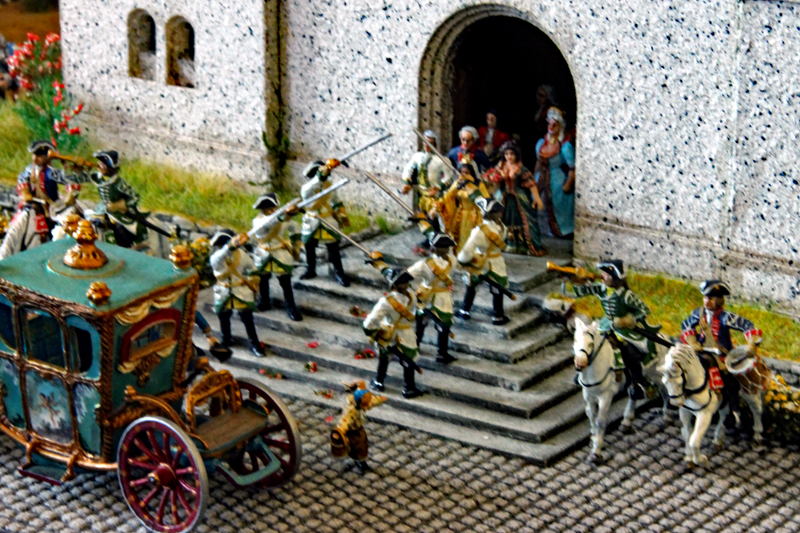 Am letzten Wochenende fand die nunmehr 2. Dioramica in Hann. Münden statt. Bei dieser Veranstaltung geht es schwerpunktmäßig um Dioramen- & Figuren im Maßstab 1/72. Im Mittelpunkt steht das Dioramenmuseum „Geschichte in Miniaturen“, welches auch als Veranstaltungsort dient und in dem immer wieder neue, gigantische Großdioramen zu bewundern sind. Neben den zahlreichen Ausstellern von Dioramen, sind auch einige Händler, Modelleure und Modellbauer sowie TableTop-Präsentationen vor Ort. Das Hotel „Schmucker Jäger“, in dem auch das Museum untergebracht ist, dient mit seinem Gastraum außerdem als Treffpunkt für alte und neue Hobbykollegen.