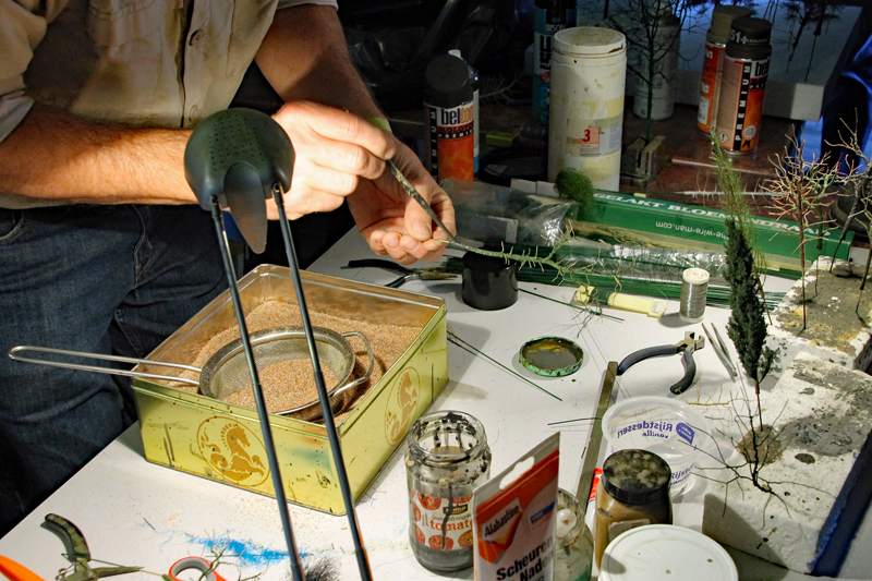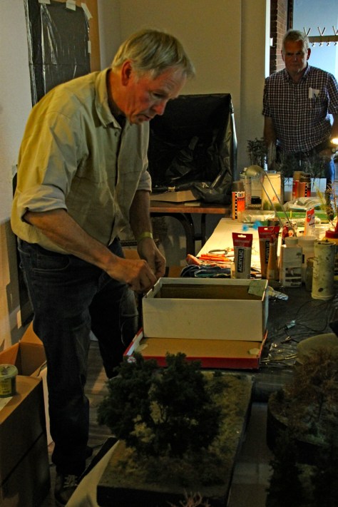 In diesem Jahr bot Jos Geurts erstmals Einblicke in seine Landschaftsgestaltung. In sehr unterhaltsamer und eingängiger Weise erläuterte er die Herstellung von Modell-Bäumen. Dabei ging es um Materialkunde, Hilfsmittel, Werkzeuge und natürlich auch um die eigentliche Art und Weise der Anfertigung. Durch viele Tipps und Tricks erläutert er, was wichtig ist und wo Fallstricke lauern. Für mich war das Ganze ein echter Augenöffner. Vielen Dank an dich Jos!