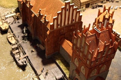Natürlich sind die fantastischen Gebäude der Stadt das Kernstück des gesamten Dioramas. Die mächtige Stadt, erbaut in der für Nordeuropa so typischen Backsteingotik, mit ihren Stadtmauern, Türmen, Stadttoren, Wohnhäusern, Herbergen, Wirts- und Badehäusern sowie des riesigen Kontorhauses im Hafen, sind durch die Arbeit der Modellbauer Torsten Burgdorf, Bill Worlitzsch und Wolfgang Meyer entstanden. Die Gebäude wurden selbst von Hand gefertigt und schließlich in Resin abgegossen und bemalt.