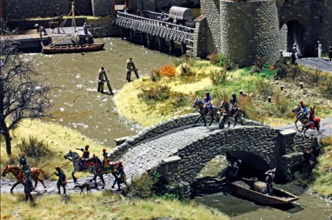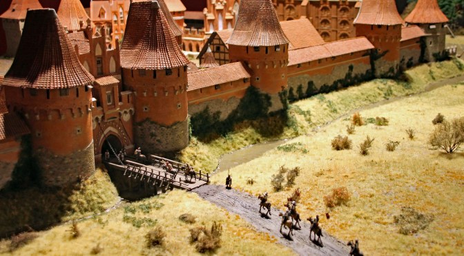 Im letzten Abschnitt dieses Berichtes geht es schließlich um das neue Großdiorama „Deutscher Orden 1329“, welches in den Museumsräumen „Geschichte in Miniaturen“ präsentiert wurde. Vor 2 Jahren könnte man schon einen kleinen Ausschnitt bewundern, nun ist der größte Teil fertiggestellt. Es fehlt „nur“ noch die Burganlage.