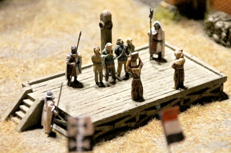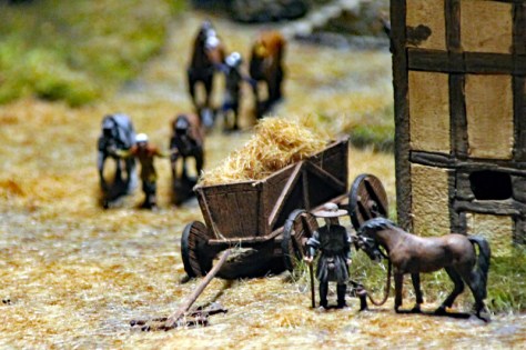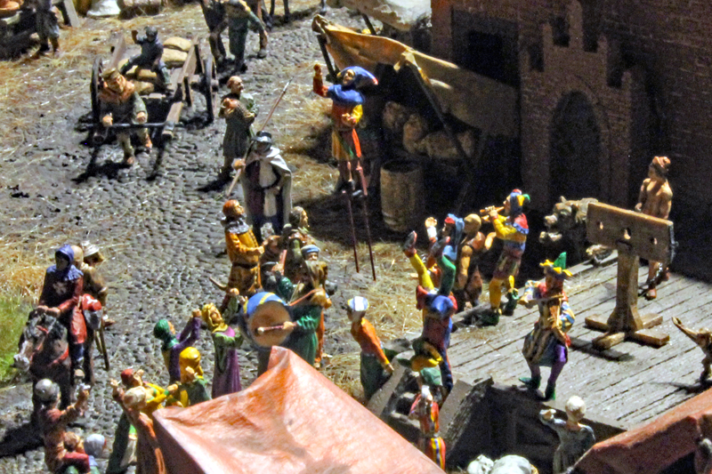 Die über 700 Figuren stammen von ganz unterschiedlichen Herstellern und wurde teilweise eigens für das Diorama von Alex Gussev, der auch die meisten Valdemar-Figuren gemastert hat, neu modelliert. Auf dem Marktplatz findet man den größten Teil der Figuren. Hier sind zahlreiche Stände aufgebaut und Gaukler, Bettler und Taschendiebe bevölkern den Platz. Die Figuren sind übrigens von Roland Kupski, Michel Vogt, Dirk Risser, Paul Hedges und Andi Schuster bemalt worden.
