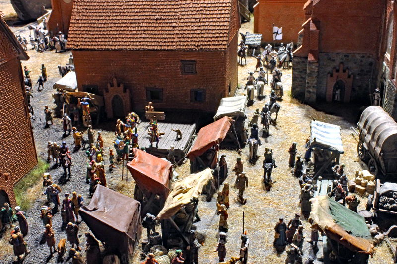 Das rund 3 x 3 Meter große Diorama zeigt eine mittelalterliche Stadt im Baltikum unter dem Einfluss des Deutschen Ordens. Im Herbst des Jahres 1329 sammelt sich die Elite des Deutschen Ritterordens zusammen mit einem Kreuzfahrerheer zu einer Winterreise gegen Litauen. Traditionell wurden im Winter Angriffe auf feindliche Gebiete unternommen, da zu dieser Zeit des Jahres das sonst unwegsame und sumpfige Gelände mit seinen vielen Flüssen und Seen leichter zugänglich war. Die Szene zeigt nicht nur das Lager und die Ankunft der zahlreichen Kreuzfahrer, sondern auch das Leben in der Stadt, im Hafen und im Umland.