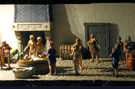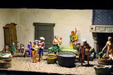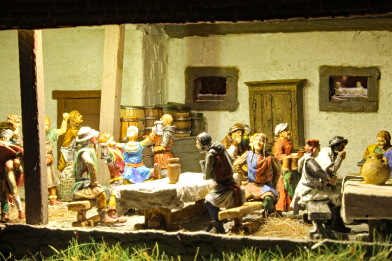 Mit diesem Diorama wurden auch neue Wege beschritten. So gibt es jetzt offene, beleuchtete Räume, die einen Blick auf das Geschehen im Innern einiger Häuser gestatten. Bei den beiden ersten dieser Räume handelt es sich um ein Badehaus und um eine Gastwirtschaft.