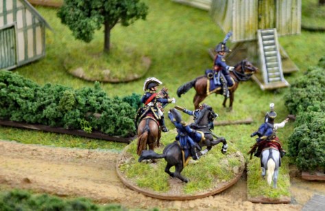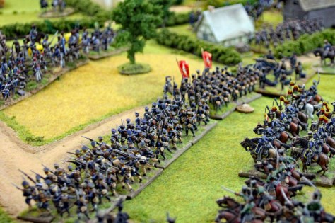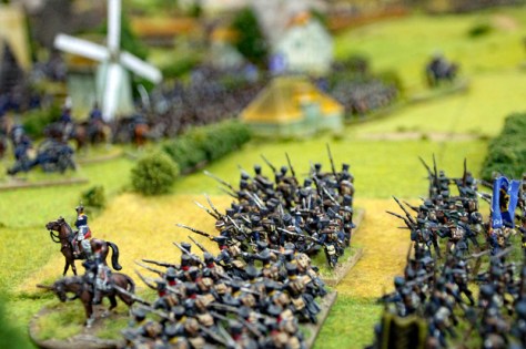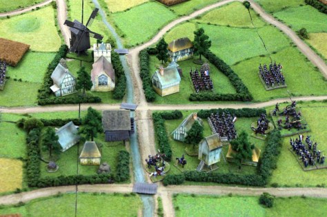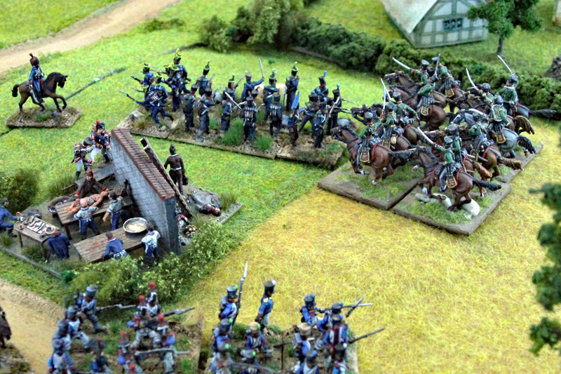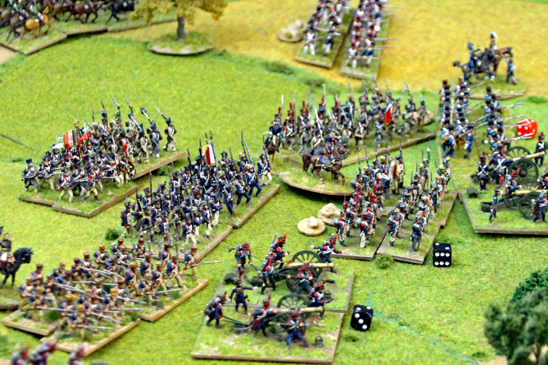 In Runde 5 und 6 kam es auf beiden Seiten zu ersten größeren Ereignissen. Die Preußen konnten die Geschütze der Franzosen vor den Dörfern erobern und die französische Infanterie zurückdrängen. Leider gelang es der preußischen Kavallerie nicht rechtzeitig, 2 Kommunikationslinien der Franzosen zu besetzen. Diese hatten bereits mit Teilen der 2. Division die Rückseite der Dorfer erreicht. Immerhin gelang es den preußischen Husaren, ein Karree der Franzosen zu sprengen und die Einheit zu vernichten.
