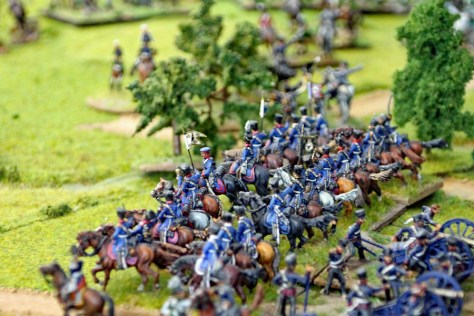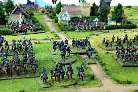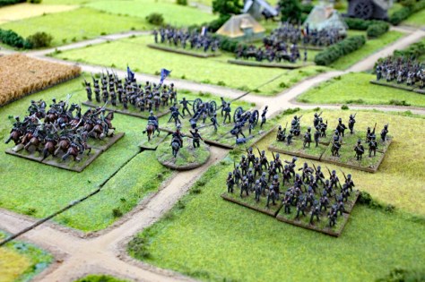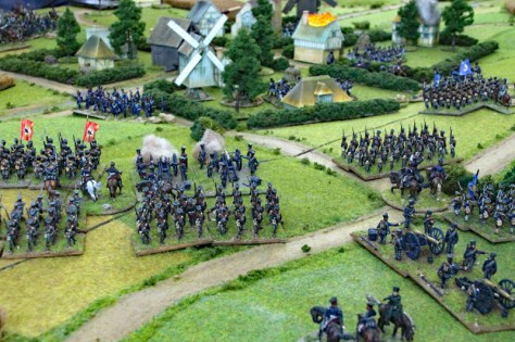 In den Runden 7 und 8 stürmten nun die 2 französischen leichten Kavallerie-Divisionen und die erste schwere russische Kavallerie-Division auf das Spielfeld.