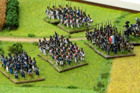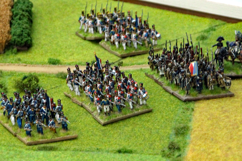 Beispielhaft sind nachfolgend die Einheiten und Figuren der Franzosen erläutert. Die zwei Infanterie-Korps der Franzosen besaßen jeweils 3 Infanterie- und 1 leichte Kavallerie-Division, mit insgesamt 23 Infanterie-, 6 Kavallerie- und 6 Artillerie-Einheiten. Das Garde-Korps bestand aus 10 Infanterie- und 2 Artillerie-Einheiten und das schwere Kavallerie-Korps aus 10 Regimentern. Hinzu kamen 19 Basen mit Generälen und 28 Meldereiter. An Figuren sind das immerhin rund 240 Reiter und 1.375 Figuren zu Fuß sowie 16 Geschütze.