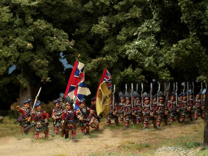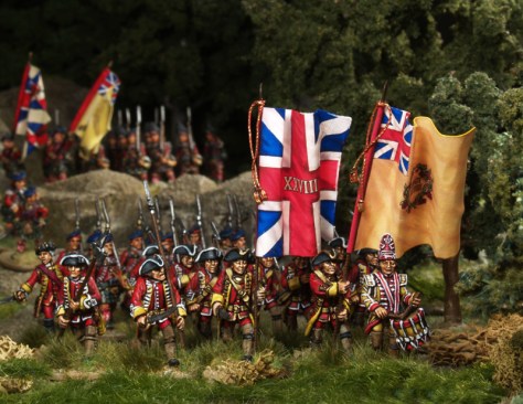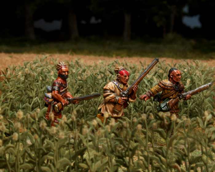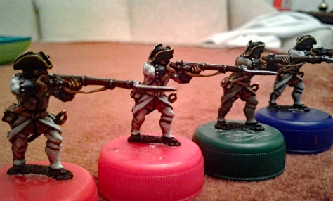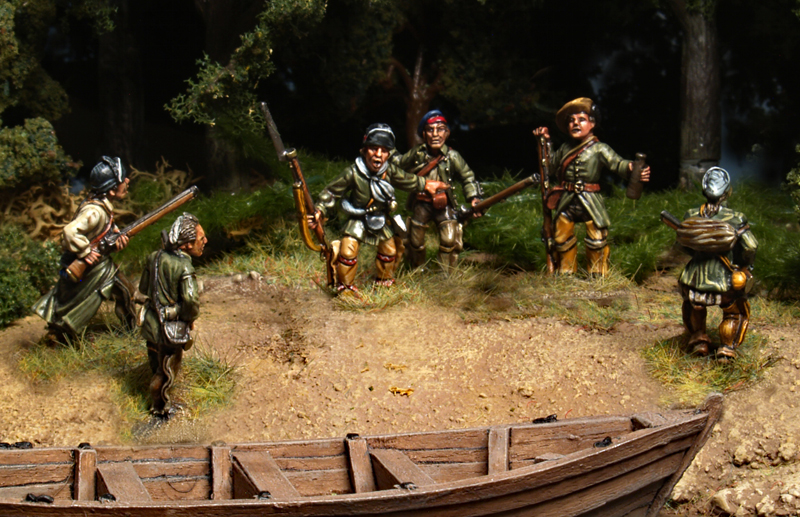 Den Grundstock unsere Figurensammlung bilden die Miniaturen von Warlord bzw. ehemals Conquest Miniatures. Wir verwenden außerdem einige Sets aus der AWI Serie von Perry Miniatures, ein paar Minis von Black Hussar sowie die bald erscheinenden Figuren aus dem Hause Sash and Saber.