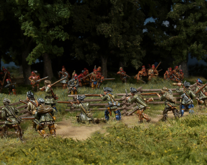 Nach einer kleinen Pause von meinem letzten French and Indian War – Projekt, dem Fort William Henry, marschiere ich wieder einmal durch Nordamerika. Doch dieses Mal bin ich nicht allein, sondern Vasa und Björn begleiten mich in die Wildnis. Im ersten Schritt wollen wir zwei kleinen Armee für größere Schlachten im French and Indian War aufbauen. Die Kerntruppen bilden je zwei Brigaden regulärer Infanterie, die von leichter Infanterie, Artillerie, Miliz und Indianern unterstützt werden. Während Vasa die Franzosen bemalt und Björn die Briten, habe ich in jedem Lager einen Fuß und bemale sowohl eine Brigade Engländer als auch eine Brigade Franzosen. Die ersten Figuren sind bereits fertig und ich hatte außerdem noch einige bemalte im Regal stehen.