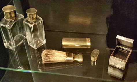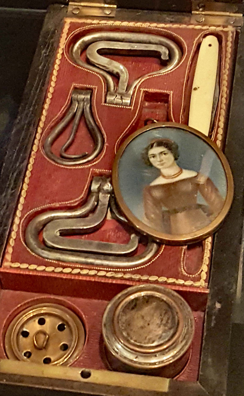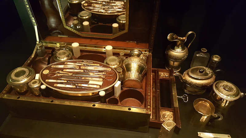 Dieses Reise-Nessesair enthält 24 Toiletten-Artikel. Der kleine Kasten wurde dem Count Las Cases im Oktober 1815 durch Napoleon mit den Worten „Ich habe diesen am Morgen der Schlacht von Austerlitz verwendet“ überreicht.
