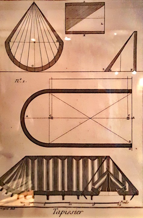 Die Encyclopédie méthodique besteht aus 210 Bänden. Die 1784 von Roland de la Platiére produzierten Bücher widmen sich dem Handwerk. Diese Zeichnungen, die daraus entnommen sind, zeigen das Handwerk des Polsterers und erklären, wie Zelte hergestellt wurden. Napoleons Zelt aus dem Jahr 1808 ist exakt dasselbe, welches man ursprünglich für eine General gefertigt hatte und in den Tafel VIII und IX zu sehen ist.
