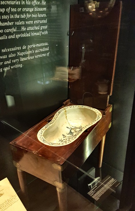 Napoleon war sehr auf seine Körperpflege bedacht. Er stand für gewöhnlich sehr früh auf, meist um 2 Uhr. Er ging nach dem Aufstehen aus seinem Schlafraum und traf sich zunächst mit seinen Sekreteren im Büro. Manchmal nahm er dann ein Bad und ging bis 7 Uhr zurück ins Bett, trank dann eine Tasse Kaffee und stieg erneut in ein sehr heißes Bad. Er liebte es zu baden und bliebt manchmal 2 Stunden in der Wanne. Sein Kammerdiener war zwar für seine Körperpflege zuständig, Napoleon rasierte sich jedoch selbst. Außerdem putze er sich auch selbst die Zähne, schnitt seine Fingernägel und besprühte sich mit großen Mengen eau de cologne. Napoleon besaß fünf große Reise-Sets und mindestens 10 kleiner Nessesairs, die auch Portemanteau genannt wurden. Diese enthielten die üblichen Gegenstände, wie Scheren, Zahnbrüsten usw. Wie schon bei Napoleons Essgeschirr, war auch Biennais der Hersteller der Toiletten-Artikel.