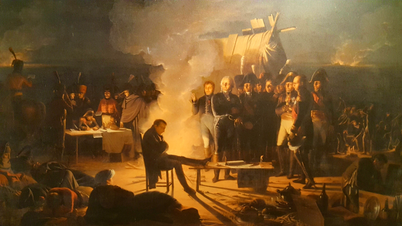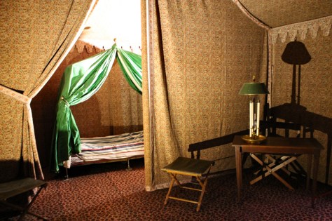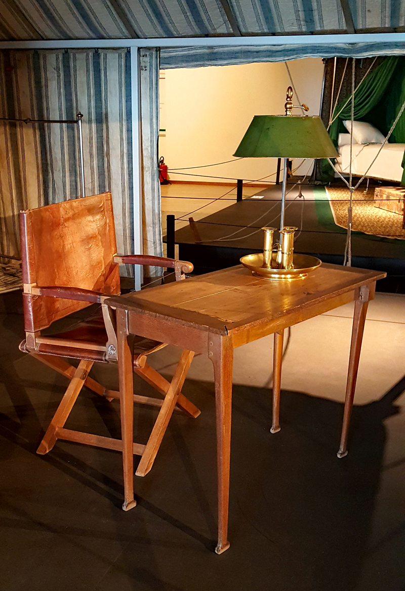 Die Rekonstruktion von Napoleons Feldlager in der Ausstellung basiert ausschließlich auf wissenschaftlichen Forschungen, einer akribischen Studie der Objekte, der Restaurierung originaler Arbeiten und auf die Rekonstruktion fehlender Teile nach Studien der Nationalen Möbel Kollektion, beruhend auf Aufzeichnungen dieser Epoche. Bis heute ist ein altes, ovales Zelt im Besitz der Nationalen Möbel Kollektion, welches hier gezeigt wird und ein Gestell umgibt, welches in der Werkstatt dieser Institution angefertigt wurde.