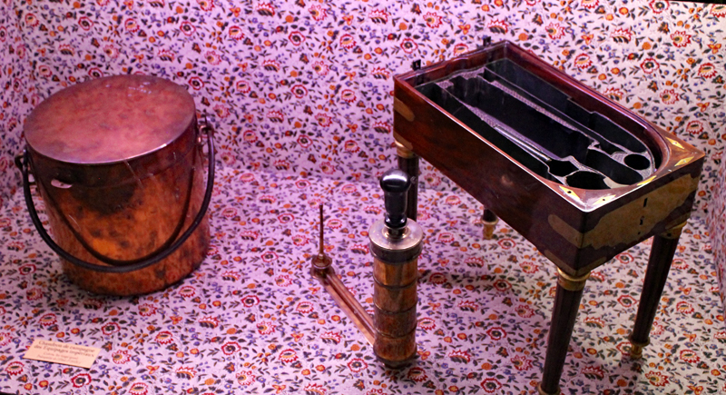 Diese Bild zeigt das Reise-Bidet des Kaisers, ebenfalls von Biennais gefertigt, welches heute in der Ausstellung im Schloss Fontainebleau zu sehen ist.