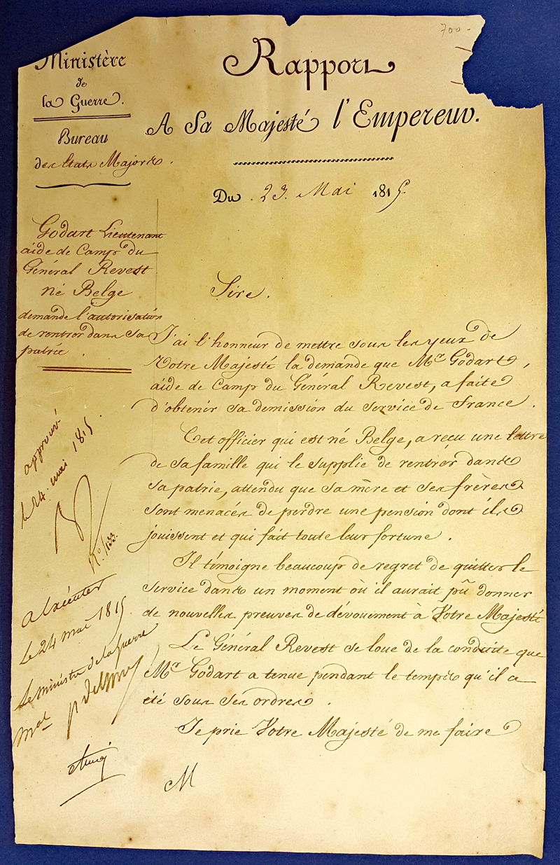 Ein Schriftstück eines Flügeladjutanten, datiert vom Mai 1815.