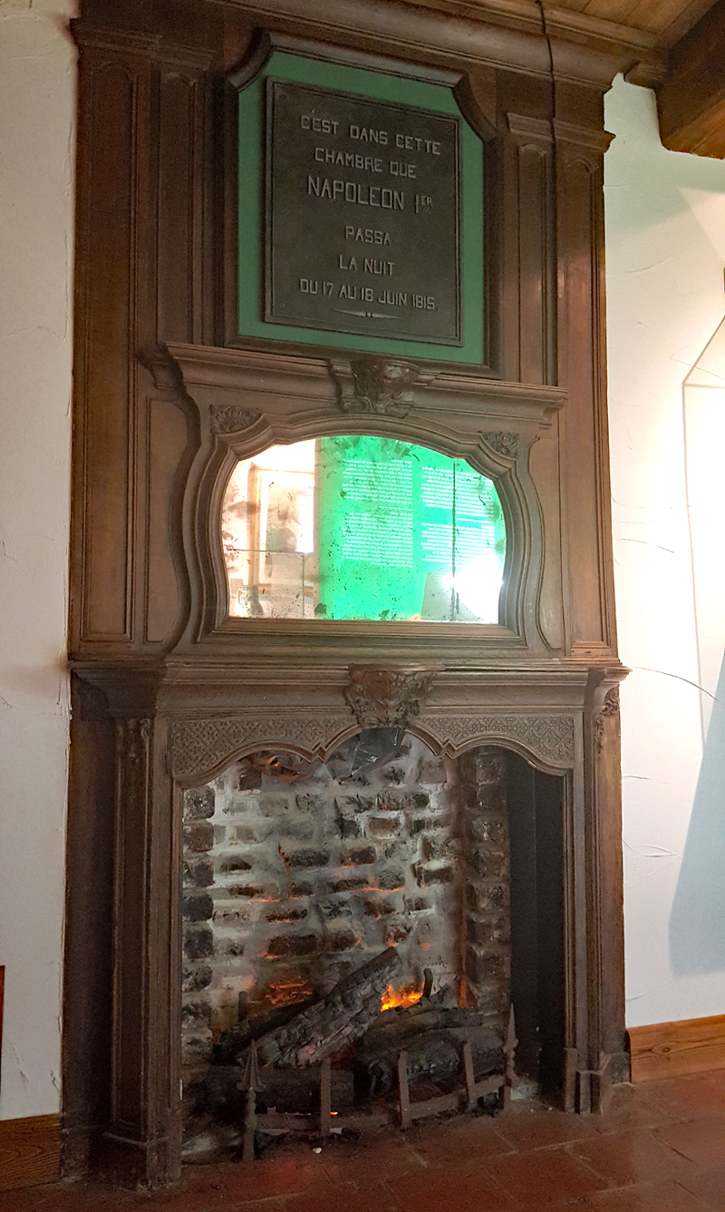 Als Napoleon sich damals vor diesem Kamin aufwärmte, soll er sich im Spiegel erblickt und laut gelacht haben. Der starke Regen hatte seine Hut dermaßen aufgeweicht, dass die beiden Spitzen bis zu seinen Schultern herabgesunken waren.