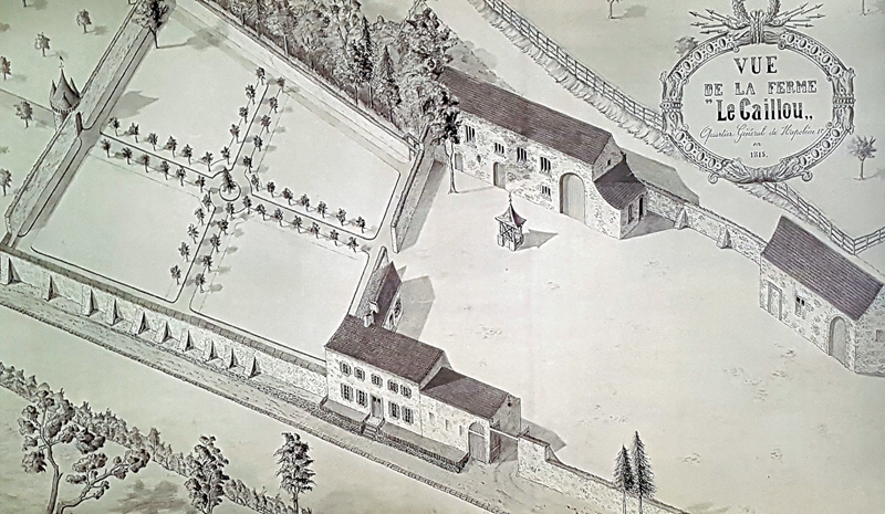 Der Bauernhof Le Caillou wurde 1757 erbaut und zum Zeitpunkt der Schlacht von Waterloo von seinem 78-jährigen Eigentümer Henry Jérôme Boucquéau betrieben. Der Kaiser, umgeben von seinem Stab, verbrachte hier vom 17. bis 18. Juni 1815 die Nacht und am nächsten Morgen wurden im Speisezimmer der Farm die Pläne für die kommende Schlacht entwickelt. Am Tag nach der Niederlage Napoleons bei Waterloo steckten die Preußen den Hof in Brand.