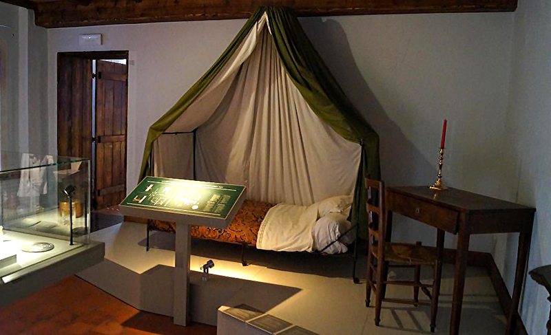 Im Nachbarzimmer war Napoleon untergebracht. Es besaß je ein Fenster zum Hof und eines zur Straße. Der Raum, es war das Wohnzimmer des Haupthauses, hatte weiß getünchte Wände und war ansonsten schlicht, bis auf zwei offenliegende Deckenbalken. Man hatte damals alle Möbel aus dem Raum entfernt und das faltbare Regenschirmbett Napoleons aufgestellt.