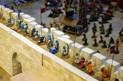 Ihr TACTICA Debüt hatten bei uns in diesem Jahr die sympathischen Jungs der TableTop Nerds Mainz mit ihrer Präsentation „Belagerung von Akkon (1189–1191)“. Die wunderschöne Spielplatte war in einen Belagerungsring, Stadtmauer, Stadt und Hafen unterteilt und bot so viele unterschiedliche Szenario-Möglichkeiten sowie eine Menge an Details und kleinen Szenen.