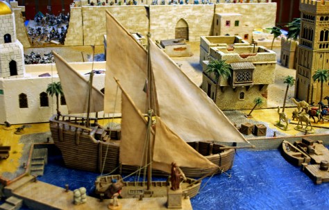 Zwar nicht direkt im Themenraum vertreten, aber extra für das Motto „Belagerungen“ angereist, war Mr.Cryns aus Amsterdam. Er zeigte mit seiner Präsentation der Belagerung von Tyros, dass mein Lieblings-Maßstab 1/72 höffentlich nie aus der Mode kommt.