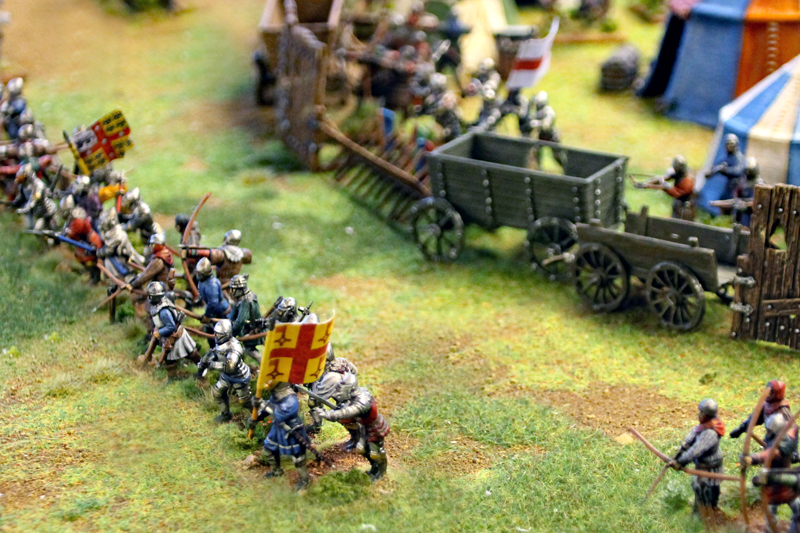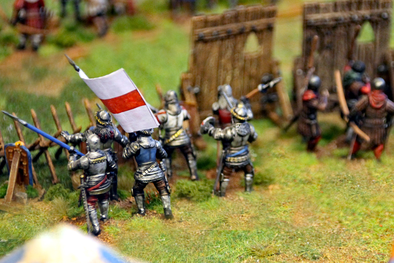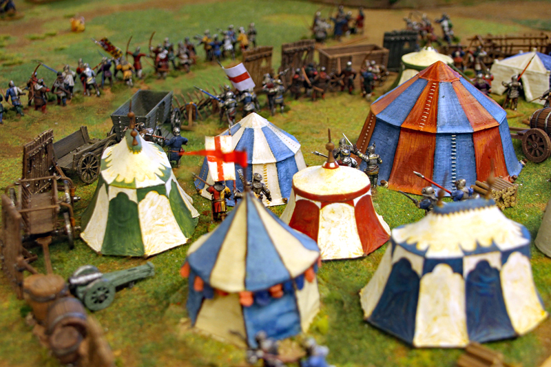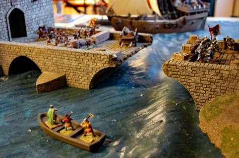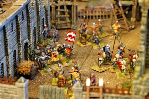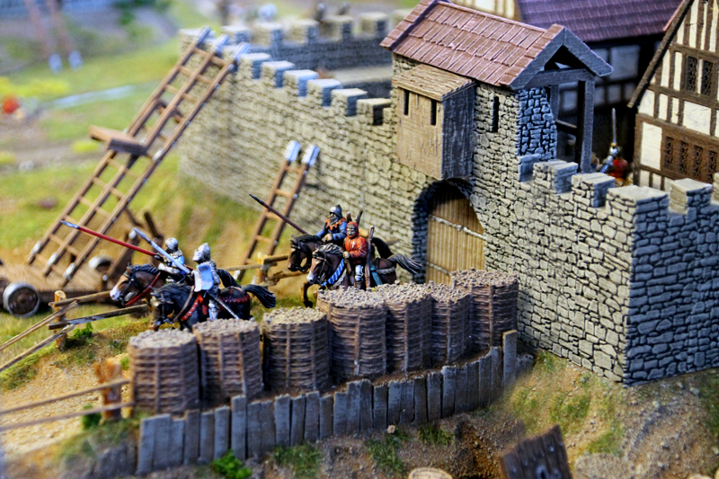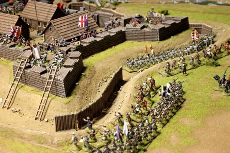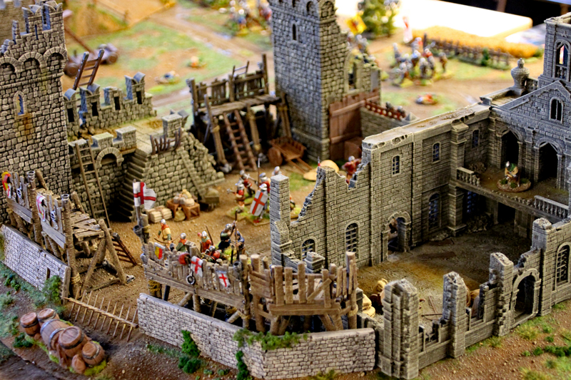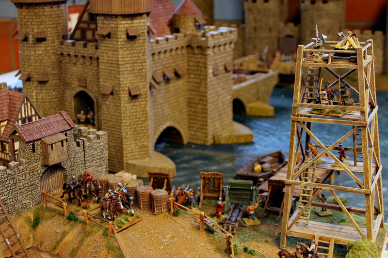 Auf der TACTICA wurde die entscheidende Phase der Belagerung, die Rückeroberung der Burg Le Tourelles durch die Franzosen, dargestellt. Gespielt wurde sowohl mit den Regelwerken Lion Rampant als auch DBA.