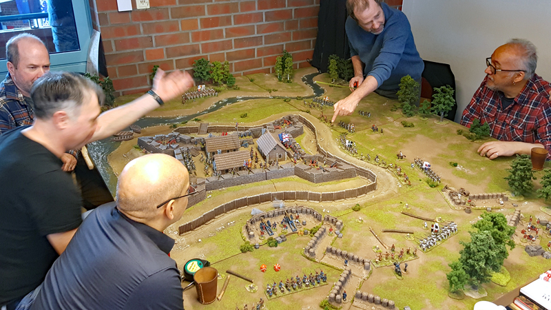 Die Schlacht wurde in drei aufeinanderfolgenden Szenarien, die sich alle an historischen Begebenheiten orientierten, nachgespielt. Als Regelwerk dienten clubeigene Regeln für die Schwarzpulver-Epoche.