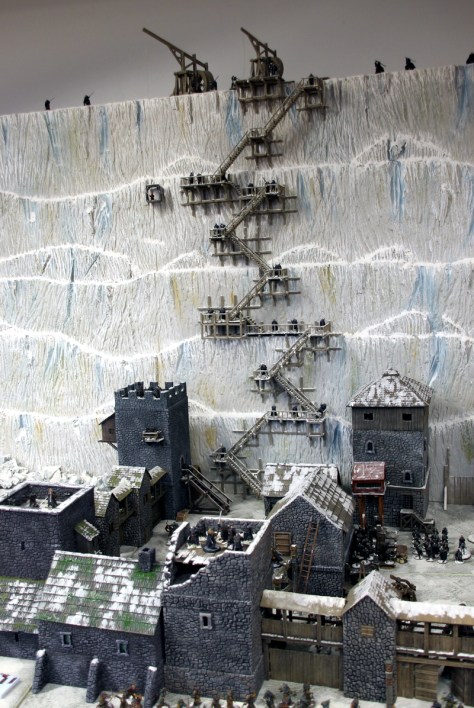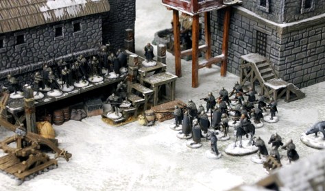 Gespielt wurde dieses epische Szenario mit zwei unterschiedlichen Regelsystemen. In der Schwarzen Festung konnten die Spieler mit 28 mm Figuren das neue Regelwerk SAGA ÄRA DER MAGIE testen. Vor den Toren der Festung wurde mit den 32 mm Figuren und dem Regelwerk A SONG OF ICE AND FIRE TABLETOP gespielt.