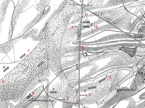 Schon um 3 Uhr traf Perponcher selbst in Quatre Bras ein. Sofort inspizierte er zusammen mit Sachsen-Weimar die Postion der Truppen und ließ weitere Einheiten in den Bois de Bossu verlegen und die Frontlinie verlängern.