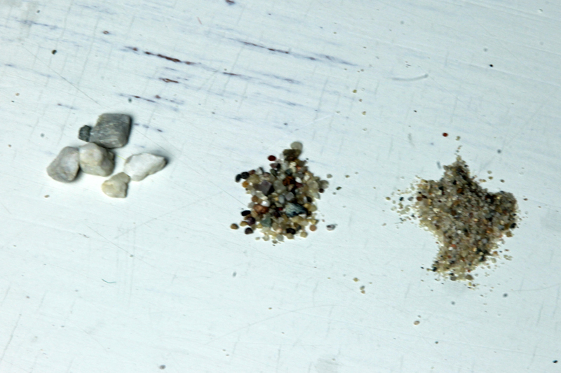 Als Trägermaterial für Einzelfiguren verwende ich Münzen (man kann stattdessen auch Unterlegscheiben verwenden). Zum einen sind die meisten Münzen magnetisch (wichtig für meine Multibasen) und zum anderen hilft das Gewicht der Münze bei der Standfestigkeit der Figuren auf dem Spielfeld. 5-Cent-Münzen sind ideal für 28 mm Figuren, 1- und 2-Cent-Münzen für 1/72 Miniaturen. Weiteres Material sind kleine Steinchen, sehr grober Sand und einfacher Sand. Man sollte nur bei ganz bestimmten Darstellungsformen feinen Sand, wie Vogelsand verwenden, da dieser für die Bemalung kaum Struktur bietet. Gut geeignet ist Sand vom Strand oder aus der Sandkiste. Siebt man diesen Sand, erhält man feinen und sehr groben Sand, beide Sorten werden wir verwenden. Auch die erwähnten kleinen Steinchen kann man überall sammeln oder günstig im Aquarien-Center kaufen. Je nachdem, welche Armee, Region oder Jahreszeit dargestellt werden soll, benötigt man unterschiedliches Grasstreu, fertige Grasbüschel oder eine Kombination aus beidem. Viele verwenden auch zusätzlich Gestaltungselemente wie Zäune, Mauern, Baumstämme oder Blumen. Das ist allerdings Geschmackssache und ich würde lieber darauf verzichten, da so die einzelne Figur oder Multibase zwar eindrucksvoll aussehen aber diese Gestaltungselemente auf dem Spielfeld eher störend wirken.