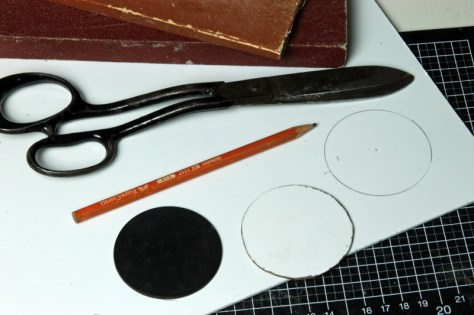 Runde Basen sind etwas schwieriger in der Herstellung. Zunächst benötigt man eine Kreisschablone (gekaufte Base, Glas o. ä.). Mithilfe der Schablone werden jetzt Kreise auf die Polystyrol-Platten gezeichnet. Die Kreise werden nun sorgfältig mit einer stabilen Schere ausgeschnitten. Die dabei unvermeidlichen groben Kanten werden abschließend mit einem Schleifpapierblock geglättet.