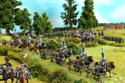 Die Französische Armee hat eine Gesamtpunktzahl von 1.559 Punkte. Nicht alle Figuren wurden für das Projekt neu bemalt. Vasa hatte die Kürassiere und Infanterie schon im Rahmen des Ligny – Projektes und die Artillerie sowie die Chasseurs für Hagelberg ferigtgestellt. Neu sind also die beiden Regimenter Lanzenreiter sowie die Protzen und Munitionswagen. Leider hatte Björn noch keine Zeit, sich mit uns zu treffen und so werde ich seine Franzosen zu einem späteren Zeitpunkt vortstellen.
