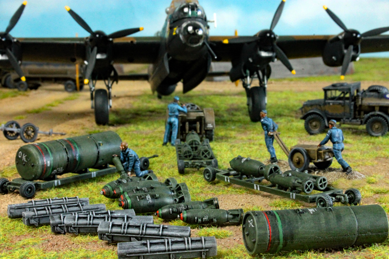 Kein Flugplatz des Bomber Command ist ohne diese Bomben-Wagen vollständig. Mit diesen flachen Anhänger-Gestellen wurde die Bomben unter den Bombenschacht der Flugzeuge gezogen. Es war üblich die Bomben-Wagen seitlich mit weißen Markierungen zu versehen, da diese flachen Wagen bei Nacht auf dem Flugfeld kaum sichtbar waren und aus diesem Grund häufig von anderen Fahrzeugen überrollt wurden.