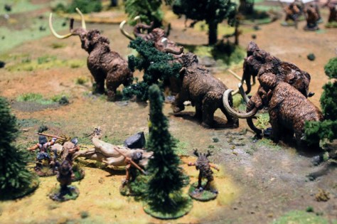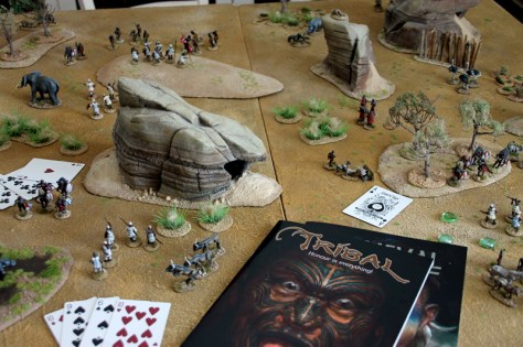 Natürlich ist es nicht bei den Grundregeln geblieben. Mit der ersten Erweiterung „Primeval“ geht es in prähistorische Zeiten. Neben Armeelisten für Neandertaler, Cro-Magnon-Menschen, Denisova-Menschen und frühen Menschenaffen sind vor allem die neuen und sehr umfangreichen Regeln für Wild-Tiere interessant. So kann ich endlich meine afrikanischen Tiere ins Spiel integrieren. Mit dem neuen Supplement „Brutal“ erweitert man die Stammeswelt um Regeln für Straßenkämpfe, Feuerwaffen und Regeln für Solo-Spiele.