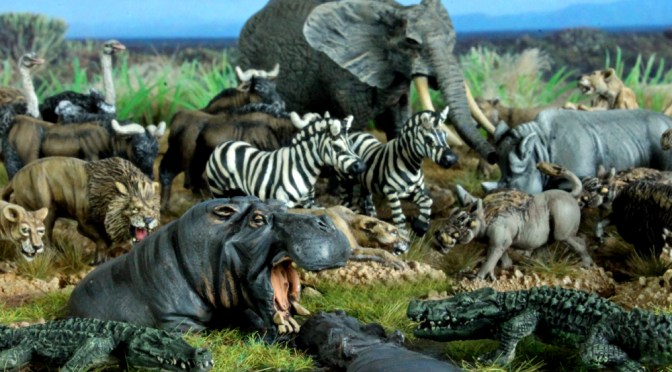 Nach der Vorstellung der Tribal-Regeln in der letzten Woche, geht es nun nach und nach an die Umsetzung. Im ersten Schritt habe ich schon einmal einen Haufen afrikanische Tiere bemalt, ein Projekt, dass schon seit Jahren in meinem Schrank schlummert. Bei der Vielzahl unterschiedlicher Tiere war die Recherche recht aufwendig. Wie sehen die Tiere aus (Männchen / Weibchen), gibt es unterschiedliche Rassen und wo kommen die in Afrika vor? Zu diesem Zeck habe ich nicht nur Online und in Büchern recherchiert, ich war tatsächlich (sozusagen) live vor Ort (dazu mehr im nächsten Bericht). Hier ein Teaser…