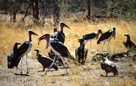 Neben den Marabus sind in der Nähe von Aas auch immer Ohrengeier und Weißrückengeier zu finden.