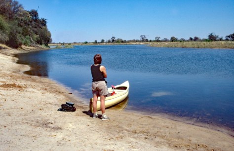 Wir haben unser Camp direkt am Okavango aufgeschlagen. Nachts muss man jedoch wegen der Krokodile vom Autodach pinkeln (sicher ist sicher). Den ersten Ausflug machten wir direkt vom Camp aus. Wir nahmen uns ein paar Kanus und paddelten stromabwärts auf dem Okavango.
