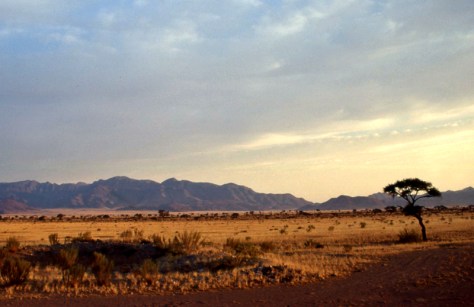 Man beginnt die Fahrt ins Sossusvlei am besten schon mitten in der Nacht und fährt dann in den Sonnenaufgang hinein.